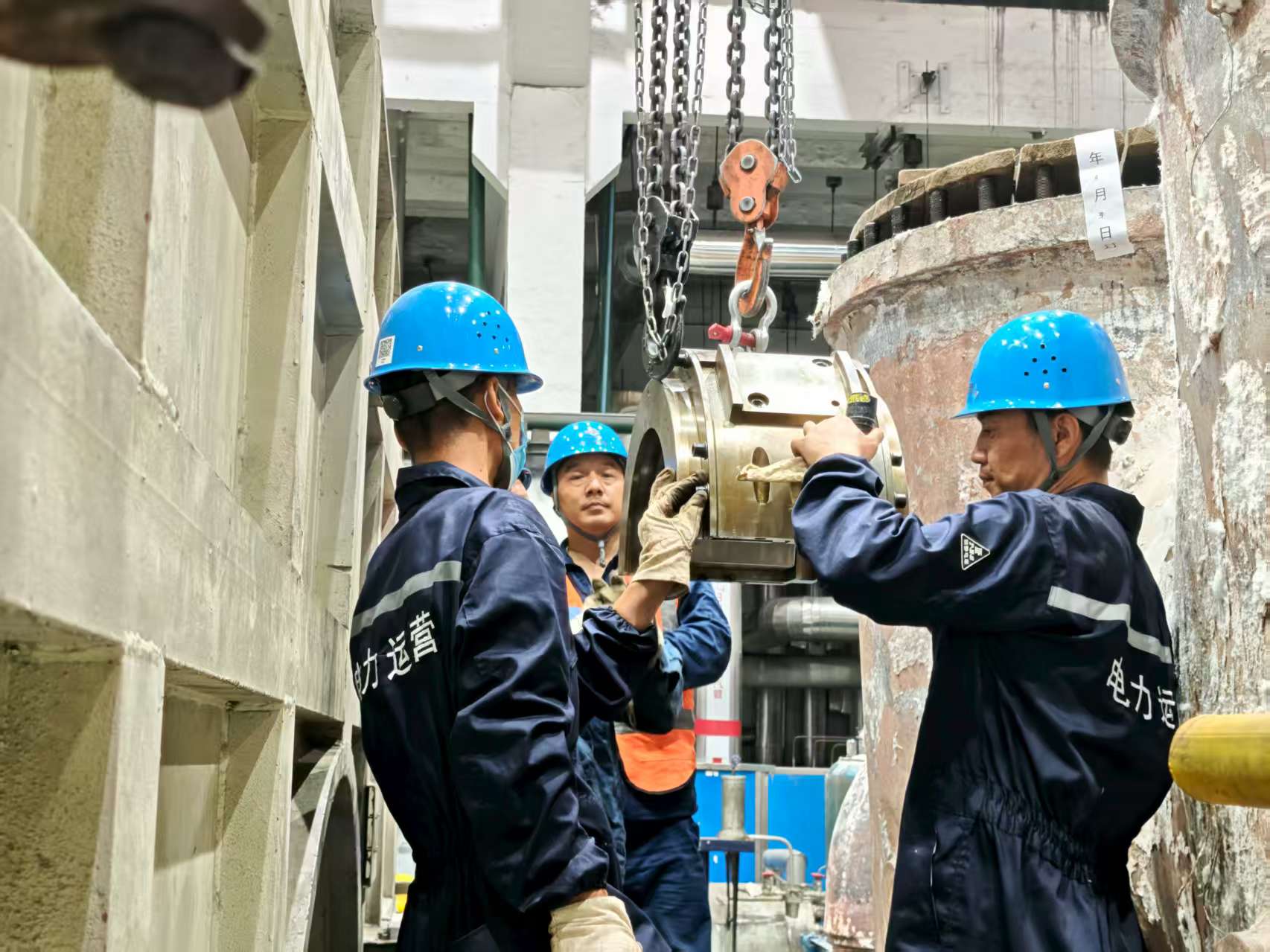 9月5日,#4机12.6米汽轮机本体大修现场,随着起重指挥一声清脆的哨响,行车缓缓运行,吊钩精准移动至指定位置,硕大的外缸刚被平稳提起,5名严阵以待的作业人员立即上前,仔细检查、精心测量,各项工作有条不紊展开……