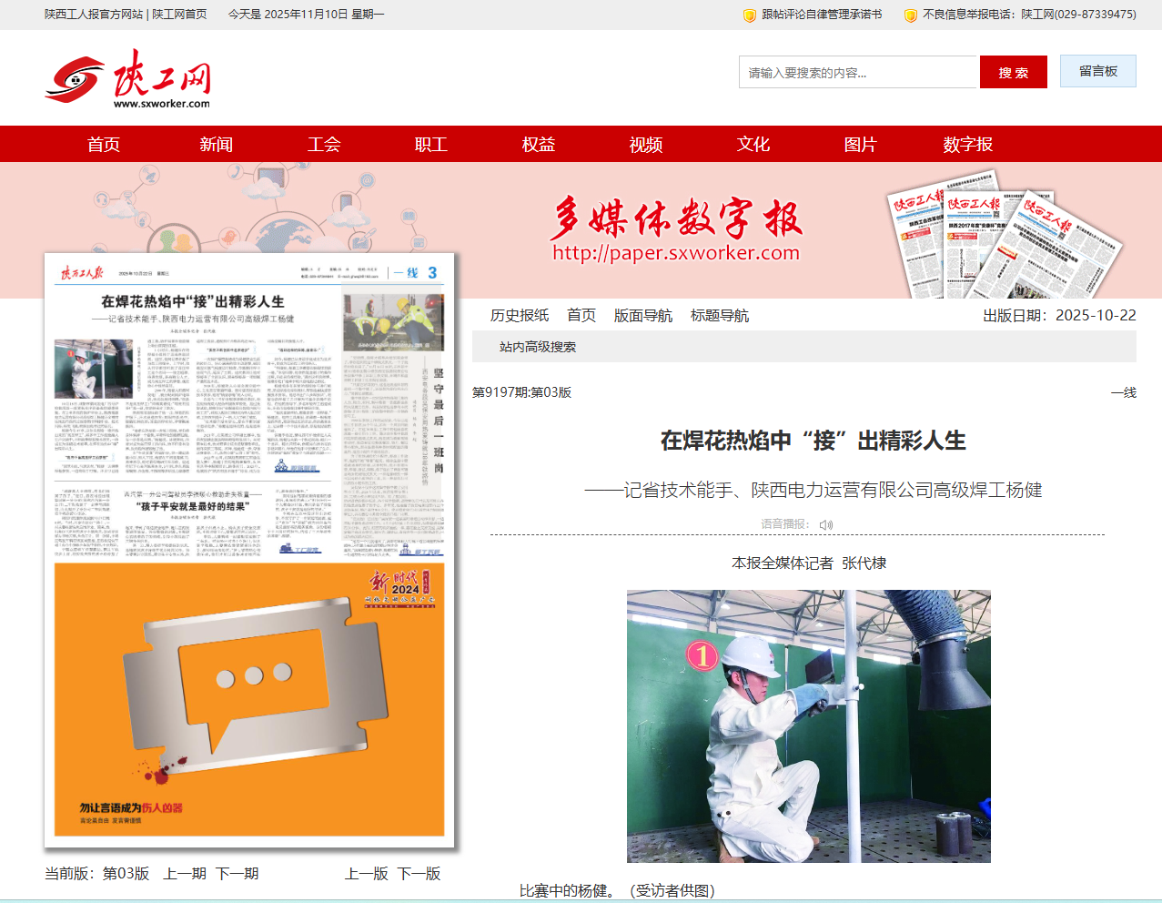 2022年12月,在陕投集团职工职业技能大赛上,杨健手持焊枪精准操作,从18名选手中脱颖而出,跻身前五。2023年,他被授予“陕西省技术能手”称号,成为公司备受瞩目的技能人才。